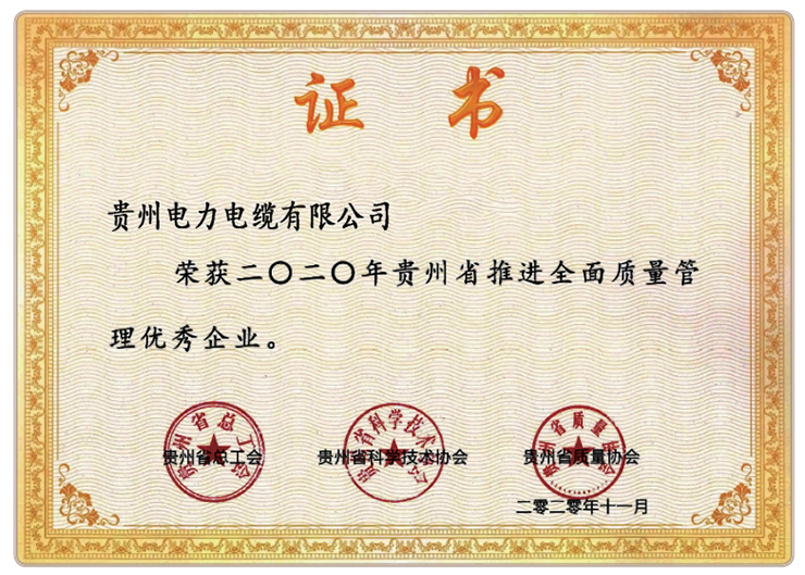 2020年貴州省推進全面質(zhì)量管理優(yōu)秀企業(yè)